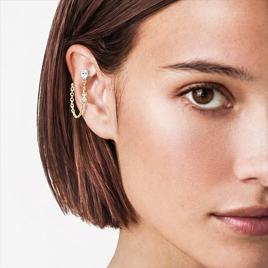Boucle d'Oreille Chaine Elise - Plaqué Or 18K et Zirconium