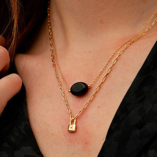 Collier Black Odity - Plaqué Or 18K et Obsidienne Noire