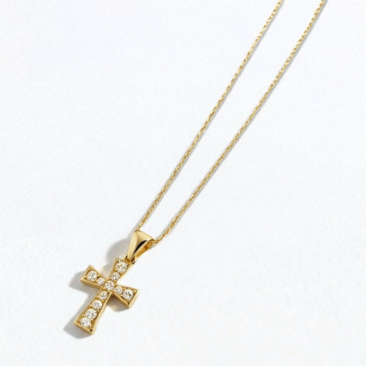 Collier Croix - Plaqué Or 18K et Zirconium