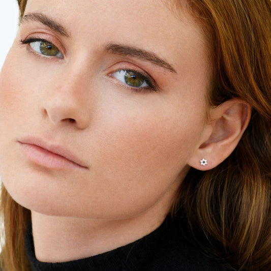 Puces d'Oreilles Edelweiss - Argent 925 Rhodié et Zirconium